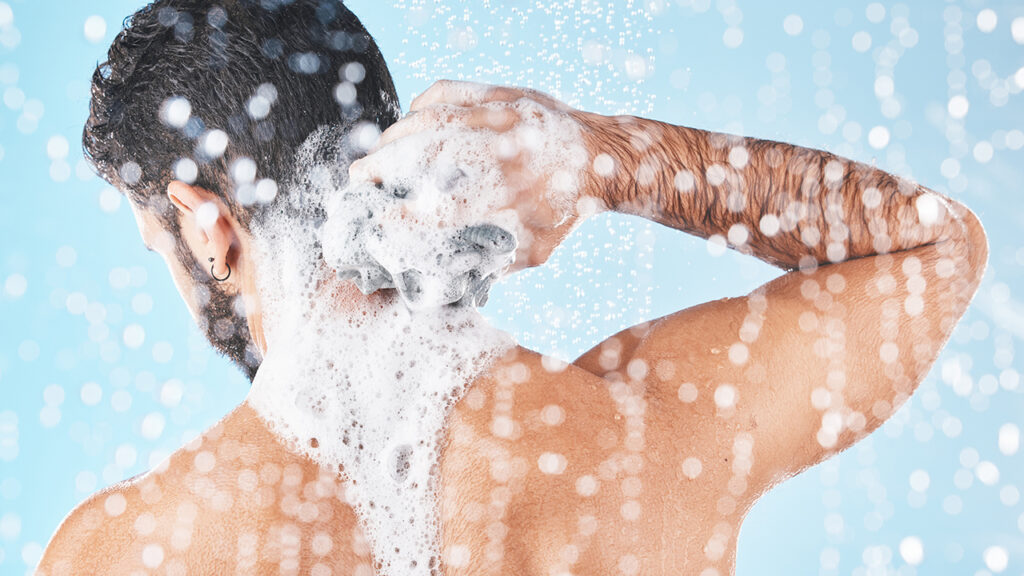 1. 샤워: 뜨거운 물보다는 미지근한 물로, 유안재 바디워시 거품을 충분히 내어 등과 가슴 부위를 꼼꼼히 마사지한다. (멘톨 성분이 모공 속 피ㅈ를 녹여준다.)